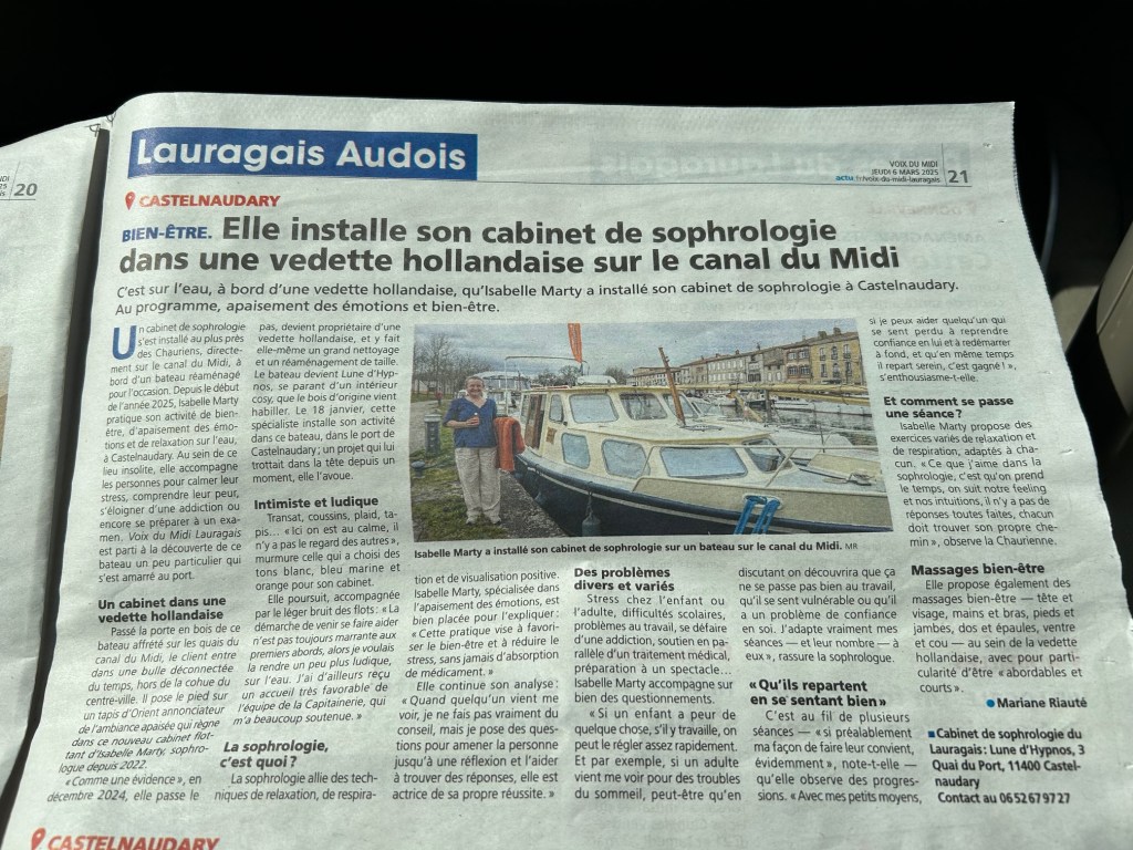 • mon déménagement à bord de la charmante vedette hollandaise « Lune d’Hypnos »,